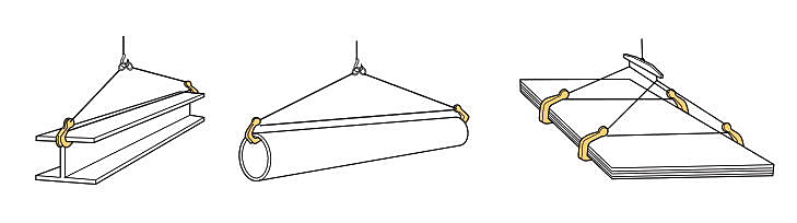 ● For horizontal lifting and transporting of steel and concrete pipes.
