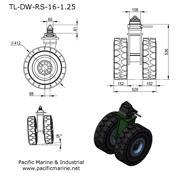 16 Inch ISO Shipping Container Caster Dolly Wheels