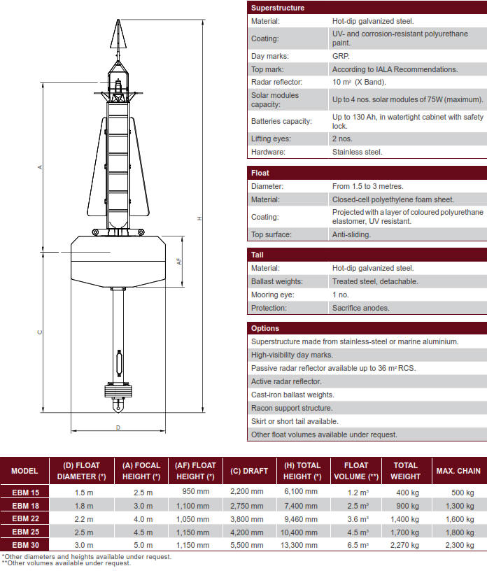 Our range of EBM 15/30 elastomer buoys is particularly designed for both sheltered and open-sea waters,
