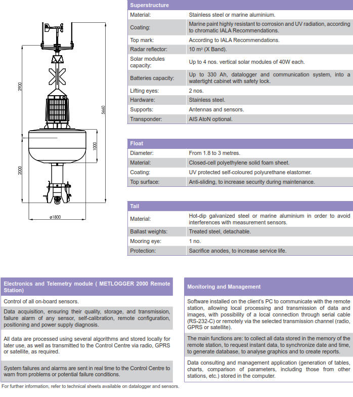 The EBM-OC Oceanographic Buoys are measurement devices of various environmental, meteorological