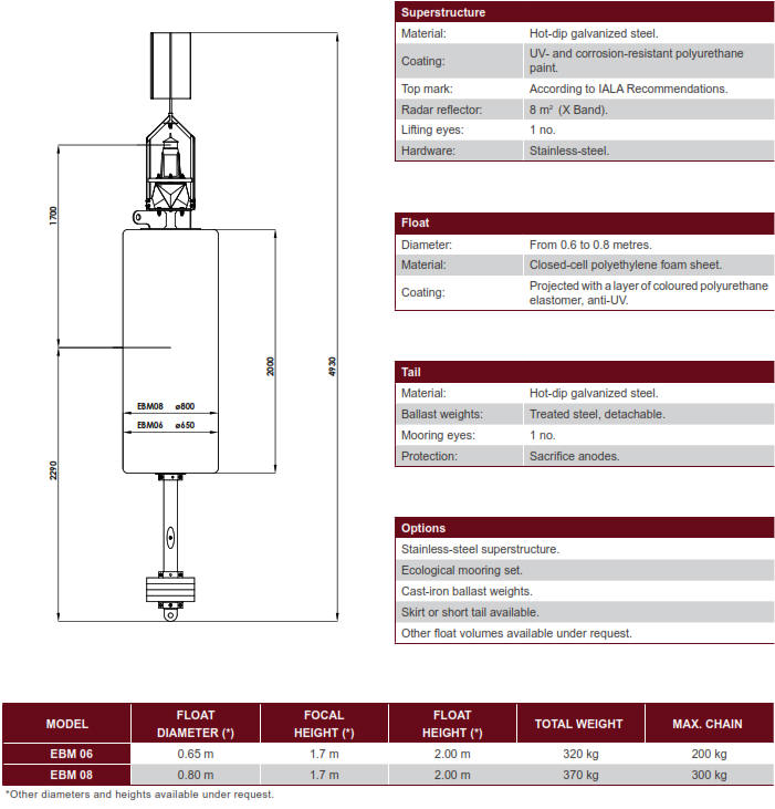 EBM 06/08 buoys are designed to be used in channels, ports and river waterways.