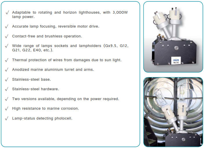 The MLC 02 automatic 2-position lampchangers are suitable for rotating beacons and major lighthouses.