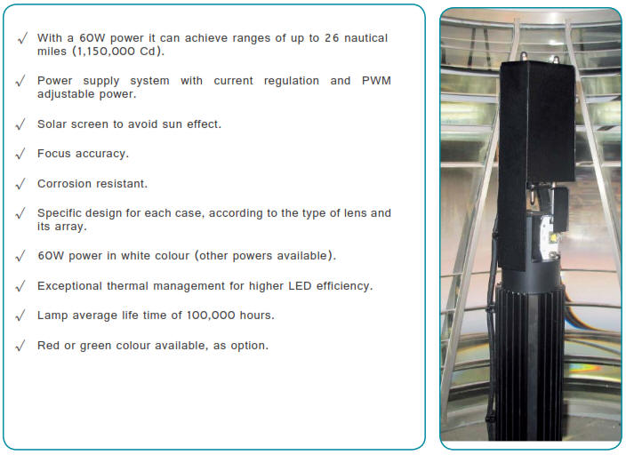 an important saving in both energy and infrastructure, by keeping the original luminous range of the lighthouse.