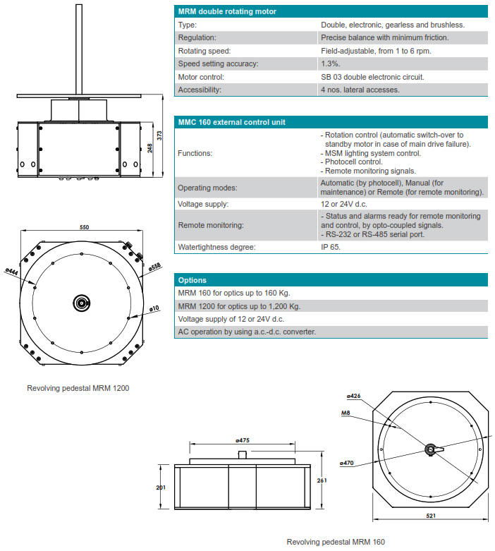 MRM 160 & 1200 Lighhouse Light Revolving Pedestal