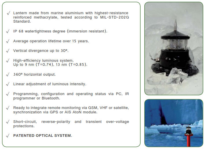 with LED diodes of high intensity, reaching a maximum range of 13 nautical miles.