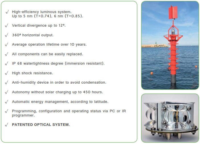diodes of high intensity, reaching a maximum range of 6 nautical miles and offering a big autonomy.