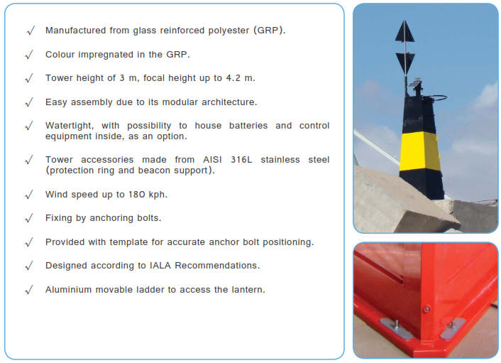 These small towers can be supplied dismounted or fully assembled, ready for their installation in site with anchoring bolts.