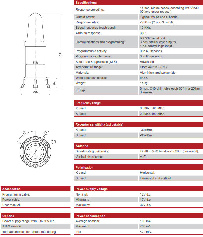 The RBM-3 is a latest-generation (frequency-agile) Radar Beacon, which works in the marine X and S radar bands,