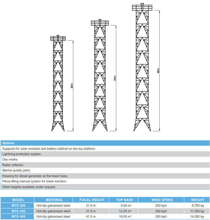 Our steel towers model MTS has been specially designed to integrate long-range rotating beacons