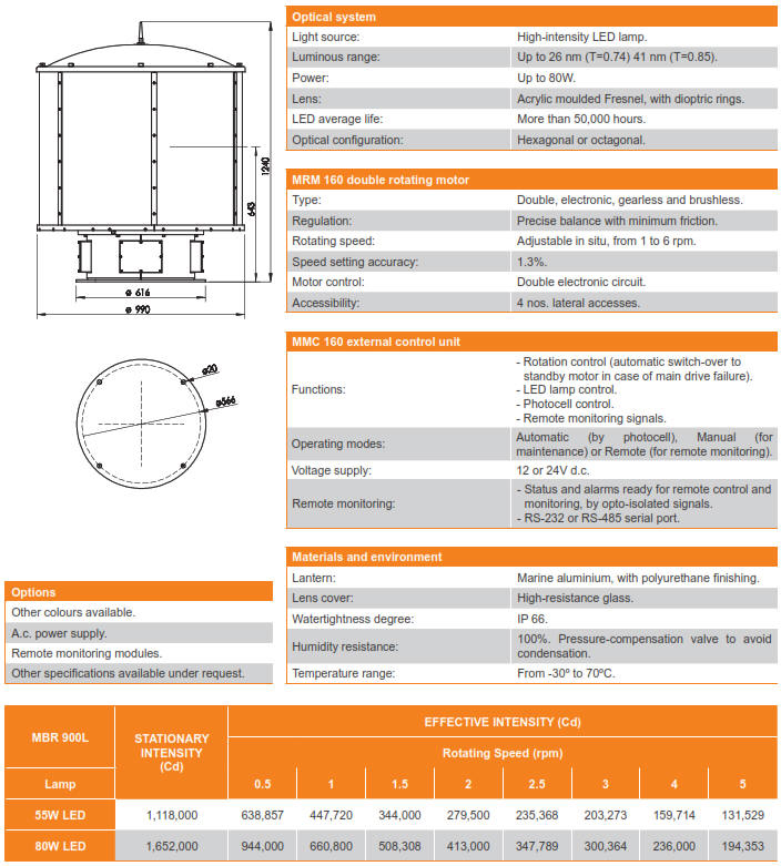 The MBR 900L is our longest-range rotating beacon, fitted with high intensity and low-consumption LED