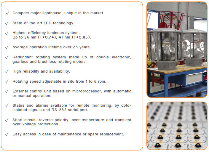 luminous source. It is a compact major lighthouse, conceived to be powered by solar energy and