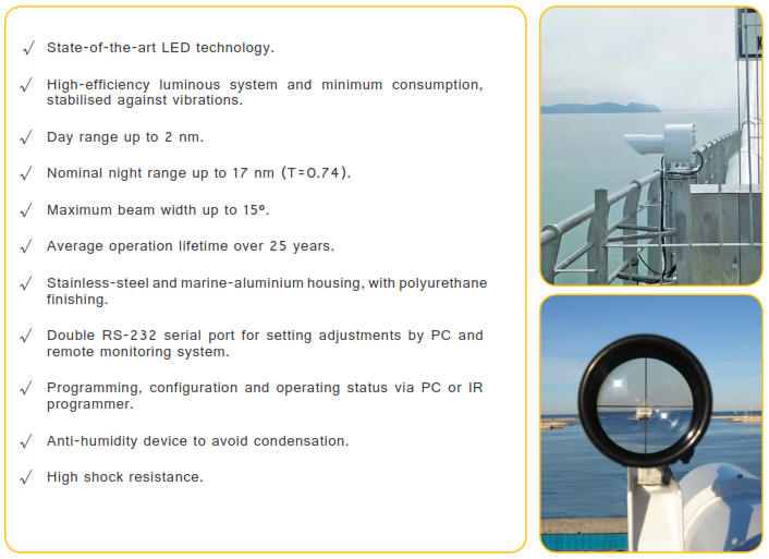 The main advantage of this beacon is its accuracy between its color sector boundaries (<0.07º).