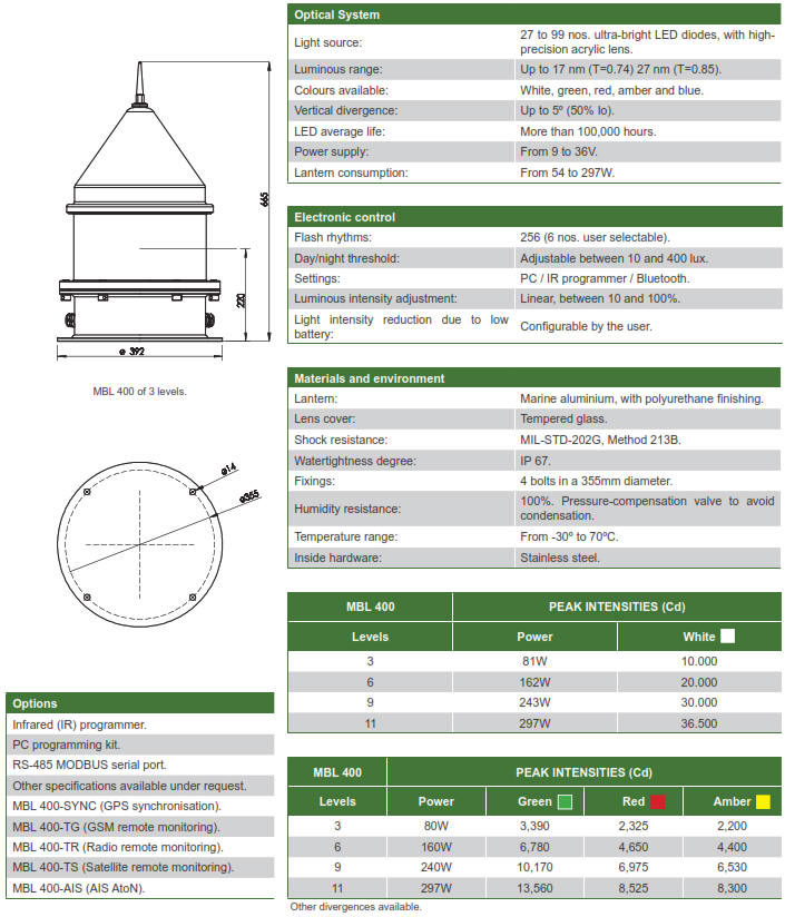 The MBL 400 is a LED flashing beacon of medium and long range, with a great optical output. Its luminous source