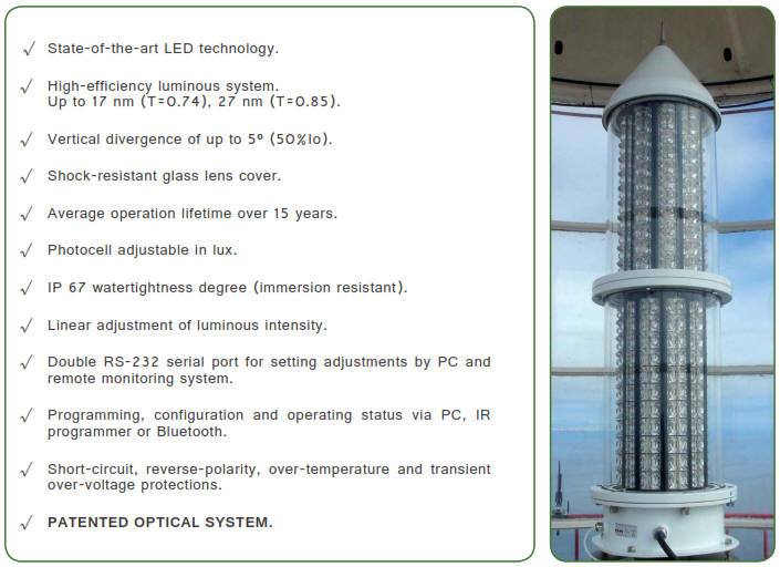 consists of high power LED diodes, obtaining a range of up to 27 nautical miles.