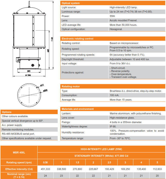 The MBR 400L is a long-range rotating beacon, fitted with highintensity