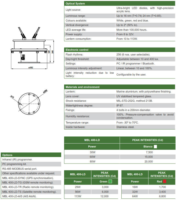 The MBL 400-LD is a LED flashing beacon of medium and long