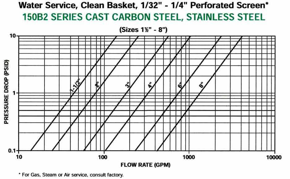Home ] Up ] 150B2 Cast Simplex Strainer Pressure Temperature Chart ] [ 150B2 Cast Simplex Strainer Pressure Drop vs Flow Rate ] 150B2 Cast Simplex Strainer Open Area Ratios ]