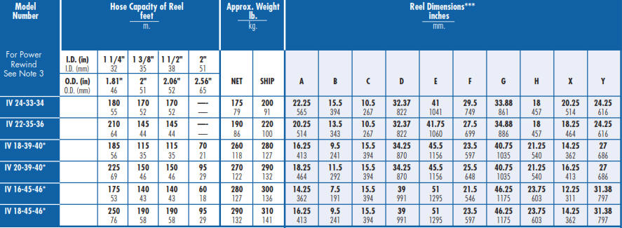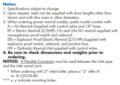 Series IV Inverted Petroleum Diesel Hose Reel Notes