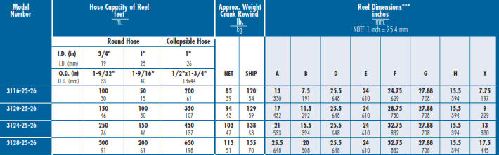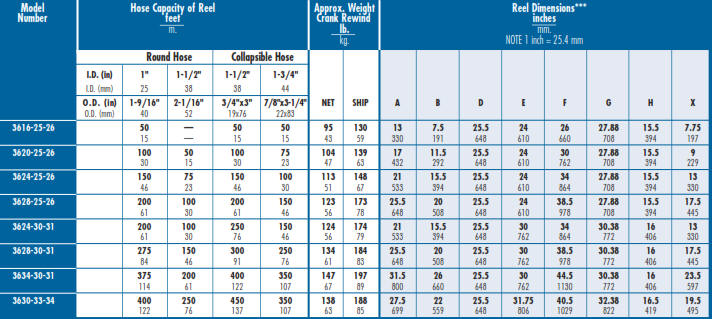 Fire Fighting Hose Reel Industrial Series 3600 Chart