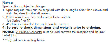 CAUTION: When using Niedner Reeltex hose a special riser and/or larger drum diameter is required (consult factory).