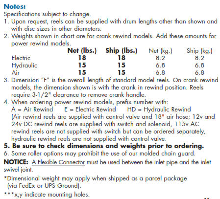 CAUTION: F4000/4100 series reels not recommended for use with Niedner Reeltex hose.