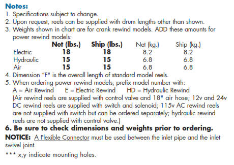 CAUTION: F4000/4100 series reels not recommended for use with Niedner Reeltex hose.