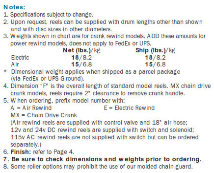 Information Required to Quote Hose or Cable Reels