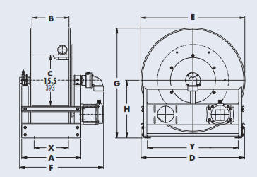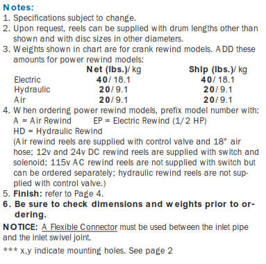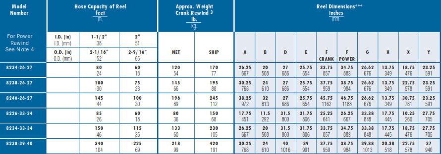 • Heavy-duty reel designed for longer lengths and larger diameters of hose through 2" I.D.