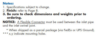• Standard inlet full-flow swivel joint with 1/2" NPT fitting.
