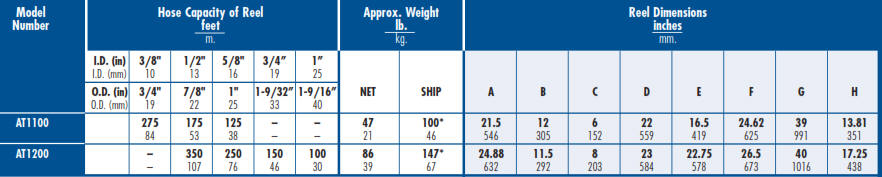 1100 and AT1200 Portable Hose Reel