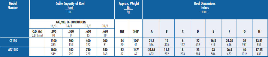 Home ] Up ] C Series Power Cable Reels ] C3200 and C1500 Series Power Cable Reels ] CR Series Power Cable Reels ] SCR700 and NSCR700 Series Power Cable Reels ] SCR10-17-19 Power Cable Reels ] LC and CR Series Power Cable Reels ] C Series Portable Power Cable Reels ] AT1300 and 4300 Power Cable Reels ] [ C1150 and ATC1250 Power Cable Reels ]