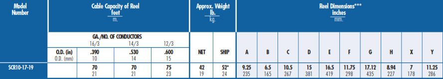 Home ] Up ] C Series Power Cable Reels ] C3200 and C1500 Series Power Cable Reels ] CR Series Power Cable Reels ] SCR700 and NSCR700 Series Power Cable Reels ] [ SCR10-17-19 Power Cable Reels ] LC and CR Series Power Cable Reels ] C Series Portable Power Cable Reels ] AT1300 and 4300 Power Cable Reels ] C1150 and ATC1250 Power Cable Reels ]