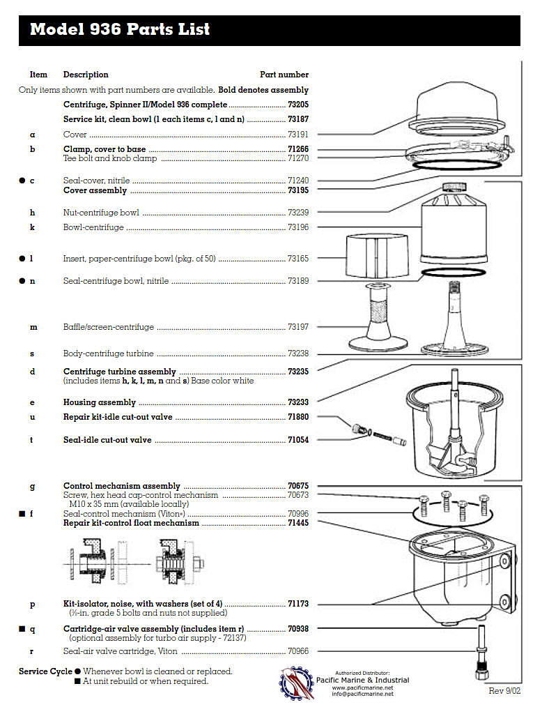 Model 936 Spinner 2 Oil Filter Manual and Parts List