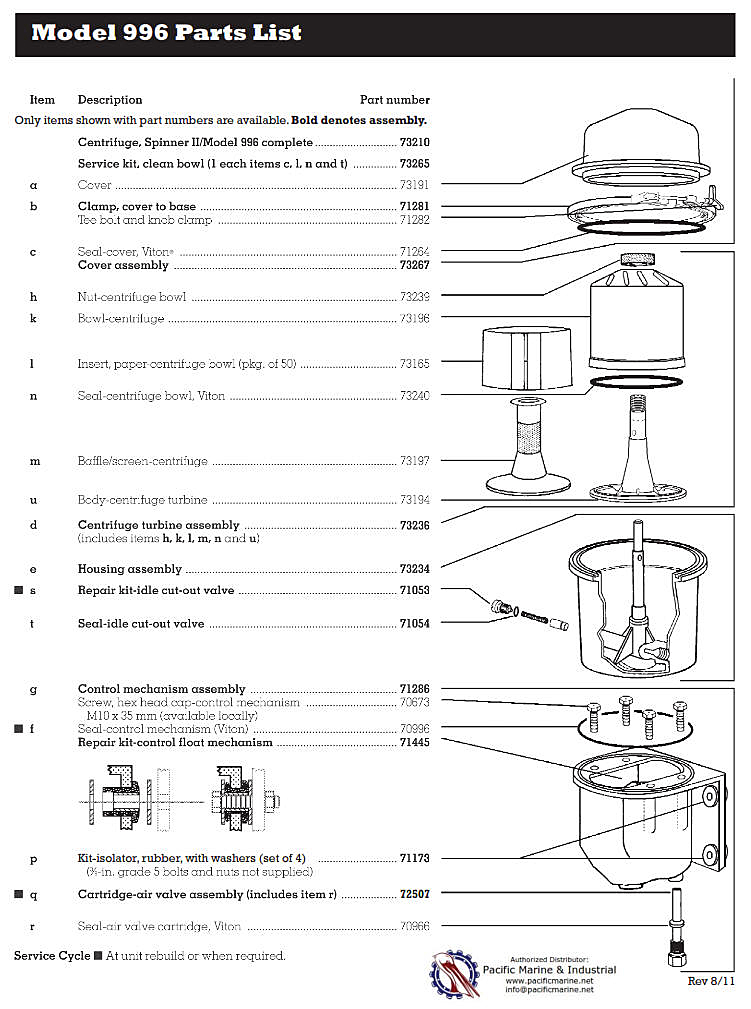 Model 996 Spinner 2 Oil Filter Manual and Parts List