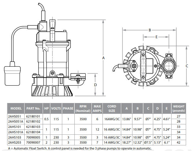 Home ] Up ] BP33 and PB50 Sump and Utility Submersible Electric Pumps ] [ 2AHS Sump and Utility Submersible Electric Pumps ]