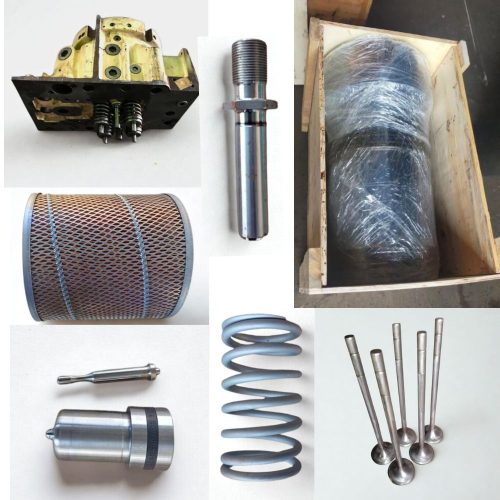 Additional stock includes: Anti Polishing Ring, Exhaust Valve Spindle, Exhaust Valve Seat, Inlet Seat Valve, Valve Guide, Guide Yoke, Rocker Arm Bushings, Sliding Rocker Arm Shoe, Nozzles, Cap Roto, Fuel Oil System Filters, Lube Oil Filter Elements, Gaskets, Springs, Exhaust Sensors, Sensors, Piston Pin Circlips, and more.