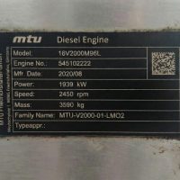 MTU 16V2000 M96L Marine Diesel Engine with Gearbox – 1939 kW | 2020 | Used Excellent
