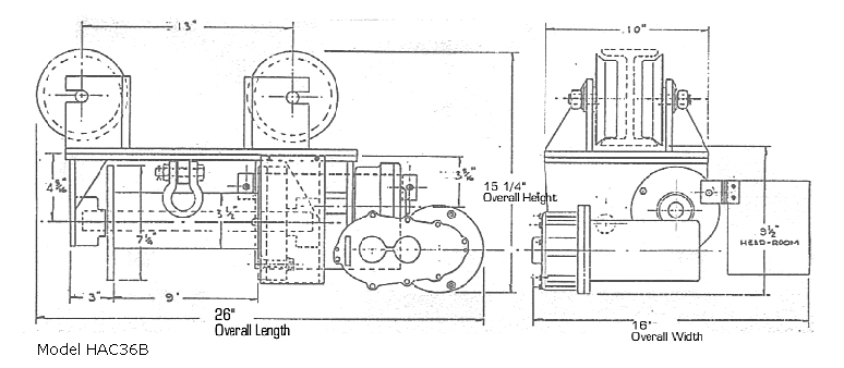 HAC36B Electric Hoist with Trolley with Limit Switch 115VAC Motor and Up to 6,000 Lbs Pull Double Line Lift