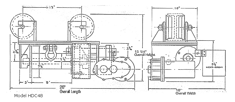HDC48 Electric Hoist with Trolley with Limit Switch 12VDC Motor and Up to 6,000 Lbs Pull Double Line Lift