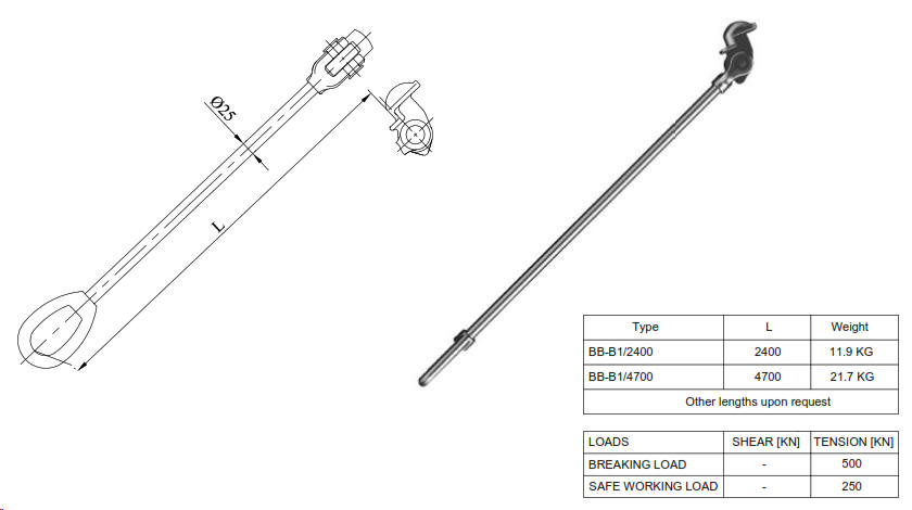 BB-B1 Eye to Swivel Head Container Lashing Bar