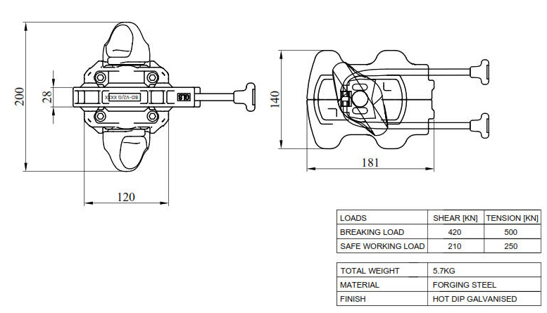 Breaking Load Tension: 500 kN / Breaking Load Shear: 420 kN