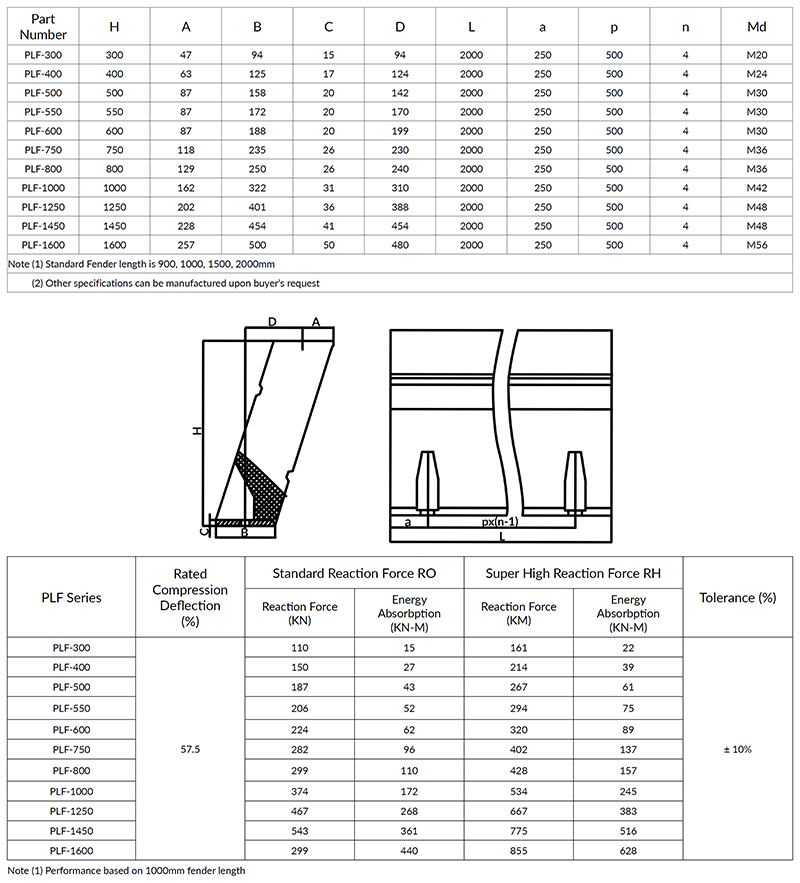 PLF Lef Series Marine Fender Series Element  Marine Fender Leg Type