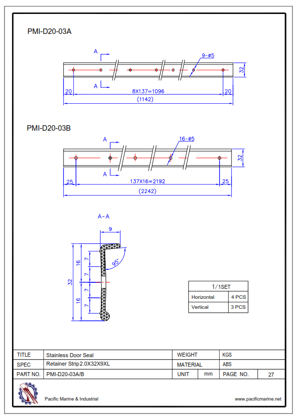 PMI-D20-03B 2.0X32X9X2242 20'&40'