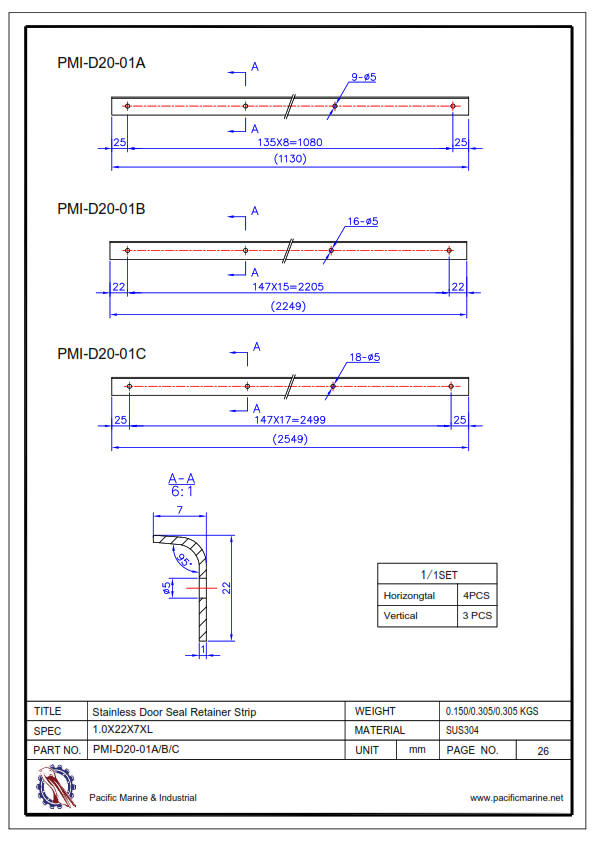 PMI-D20-01A 1.0X23X7X1130