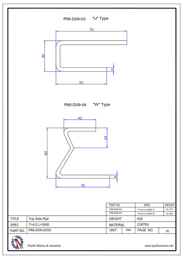 PMI-D09-03 T=4.0 L=2400 "U" Type Maersk