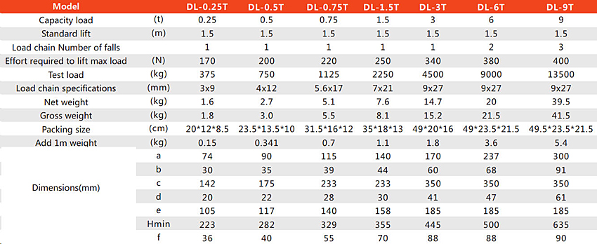 Aluminum Lever Chain Hoist PDL Series