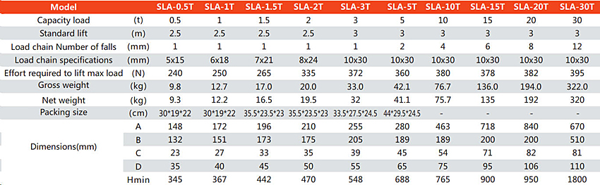 ● Fitted with high strength grade 80 alloy steel load chain with galvanized