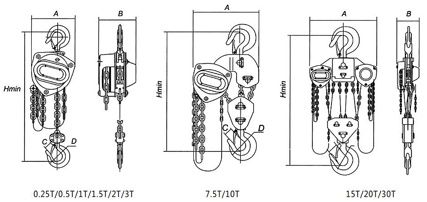 ● Chain hoist capacity range from 0.5 ton to 30 ton.