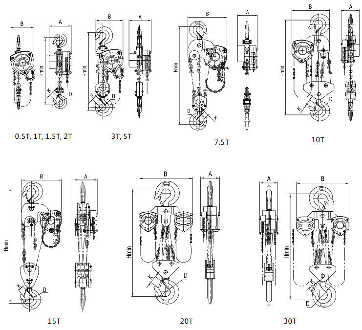 ● Chain hoist capacity range from 0.5 ton to 50 ton.