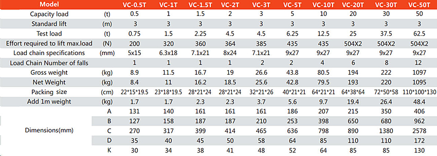 ● Chain hoist capacity range from 0.5 ton to 50 ton.